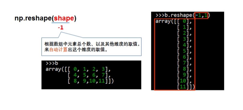 - np.reshape(shape) 不改变当前数组,按照shape创建新的数组