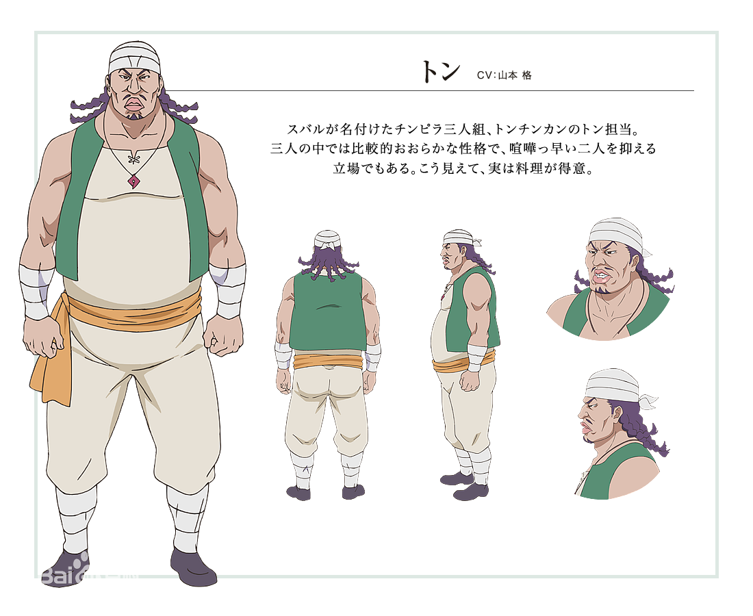 | 阿顿(トン,[Ton],又译:桶) 昴所命名的地痞三人组,顿珍汉的“顿”担当。 三人中性格相对豁达开朗,有时也站在抑制爱打架的其他两人的立场上。 实际擅长料理。 |
