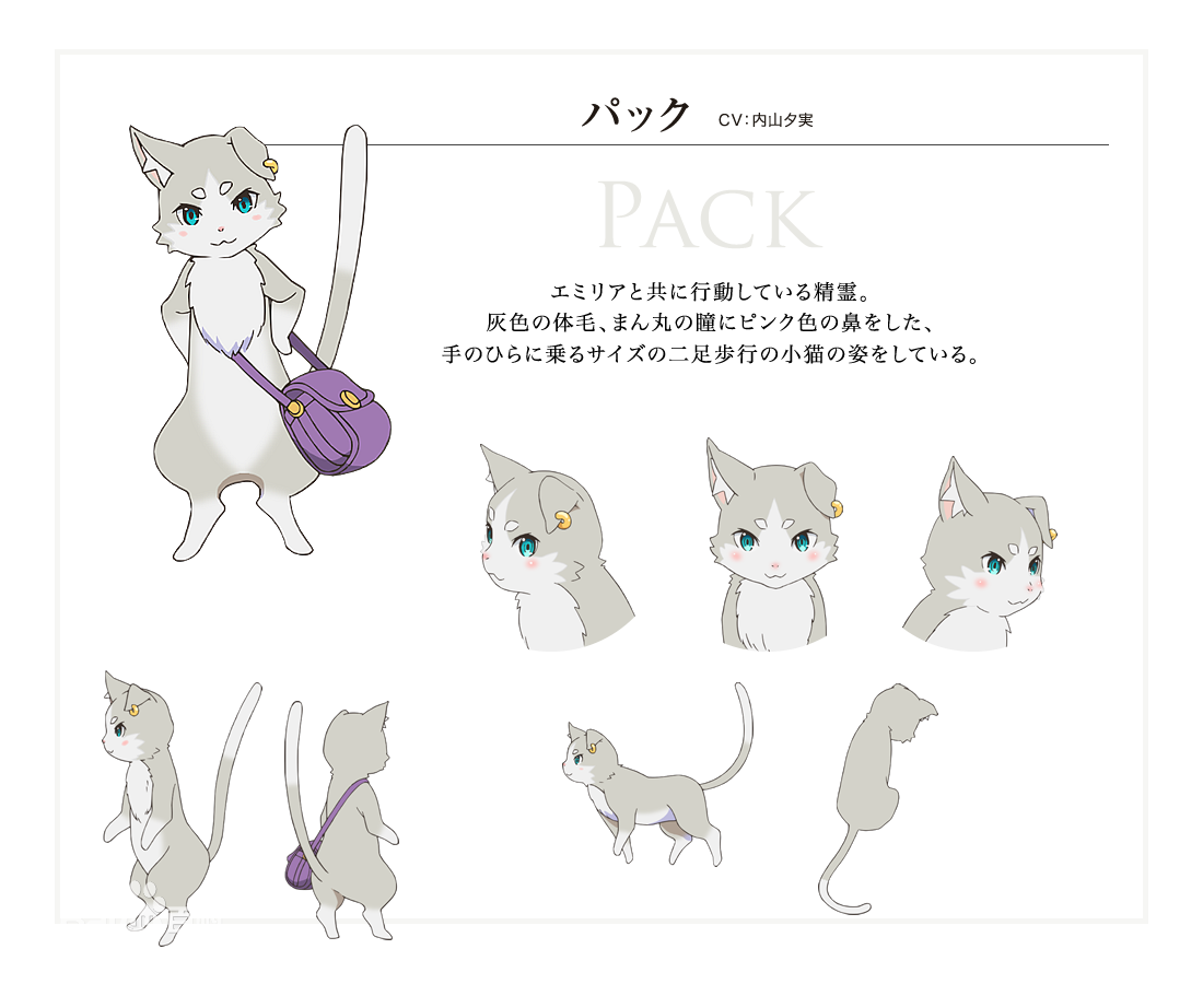 | 帕克(パック,[Puck]) 灰色的体毛,大大的眼睛,粉红色的鼻子,手掌大小的身体,双脚行走的小猫。 早九晚五生活的男性精灵,时刻伴随在爱蜜莉雅的身边,爱称她为莉雅,是父亲一般的存在。 真身是持有金色光辉的巨兽,长期居住在艾利欧鲁大森林永久冻土世界、 掌管火之玛那,被称为“永久冻土”的终焉之兽的古老大精灵。 无法忍受失去爱蜜莉雅的世界,立下契约,在爱蜜莉雅死后进行毁灭世界的行动。 |